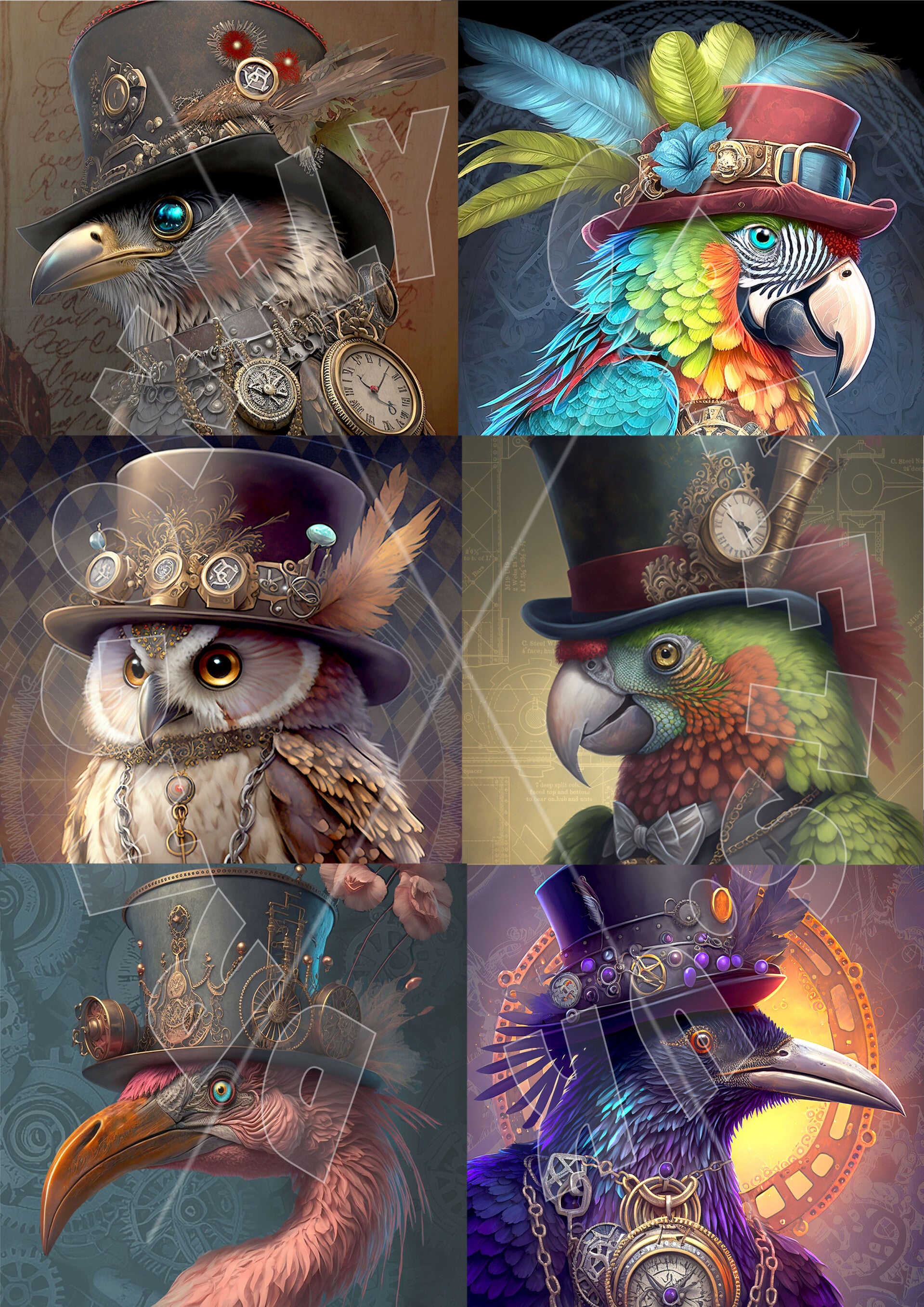 Steampunk Birds Multi Rice Paper